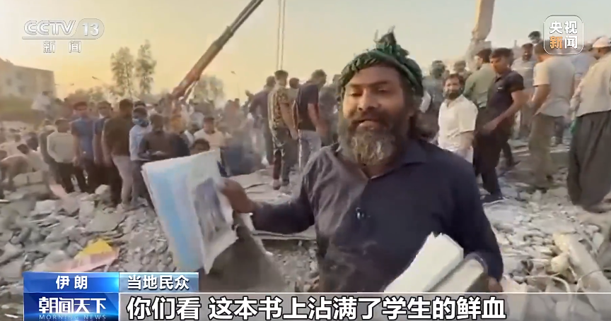 當(dāng)?shù)貢r(shí)間2月28日,美國(guó)和以色列對(duì)伊朗發(fā)動(dòng)聯(lián)合軍事打擊,伊朗一所女子小學(xué)遭到導(dǎo)彈襲擊。遇襲學(xué)校教室被毀,磚石瓦礫落滿桌椅,學(xué)生遺落的書(shū)本散落地面。當(dāng)?shù)孛癖姂嵟硎荆骸昂⒆觽兘裨缡莵?lái)上學(xué)的,如今卻被掩埋在廢墟之下!這是孩子們的課本,書(shū)上沾滿了學(xué)生的鮮血……”圖片來(lái)源于央視網(wǎng)
