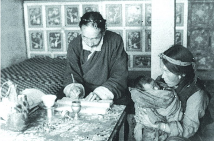 西藏農奴抱著新生兒來到農奴主家登記并交納人頭稅 圖:光明日報