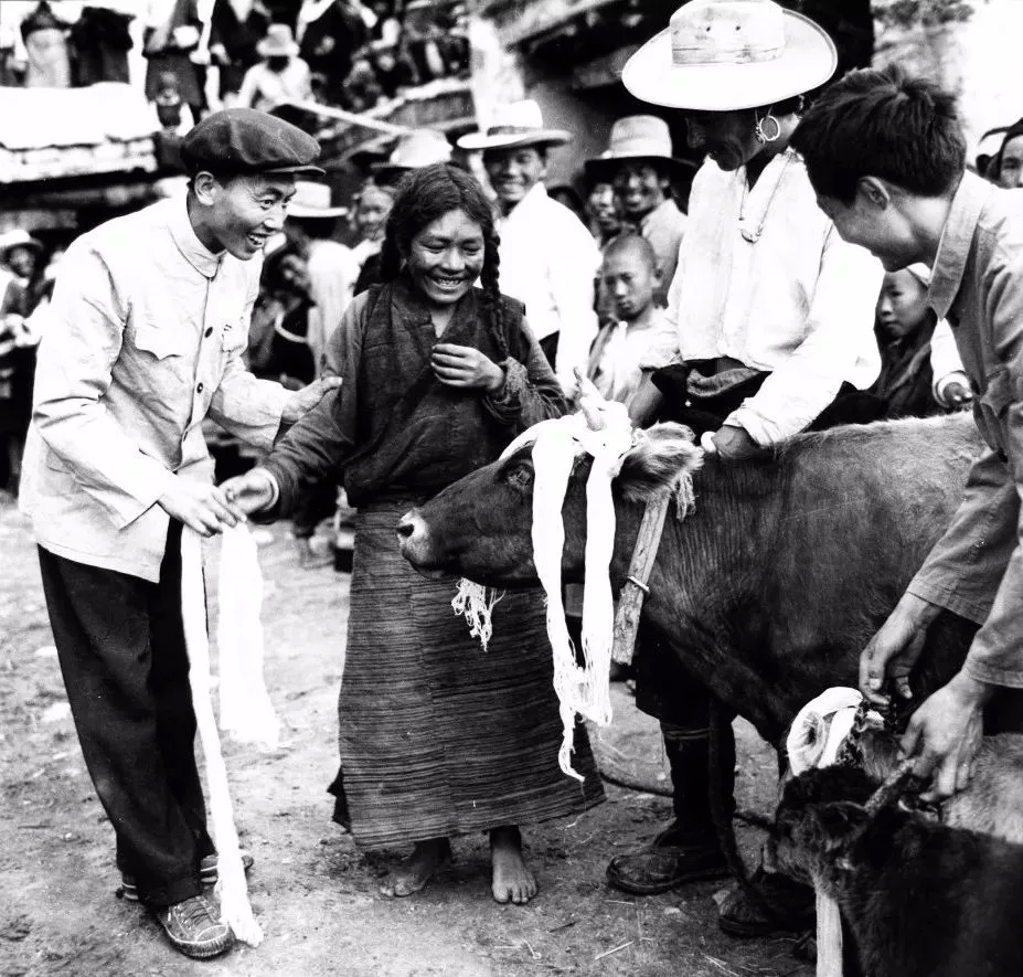 西藏拉薩西郊農(nóng)民措姆喜分牲畜。陳宗烈攝于1959年