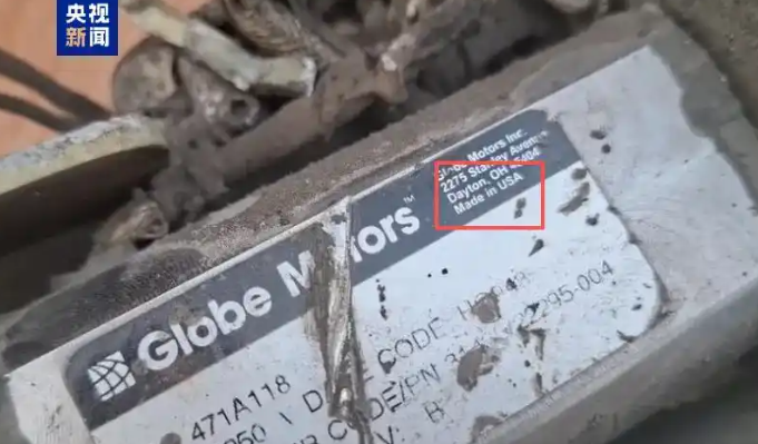 襲擊伊朗南部米納卜學校的導彈殘片上“美國制造”字樣清晰可見 圖:央視新聞