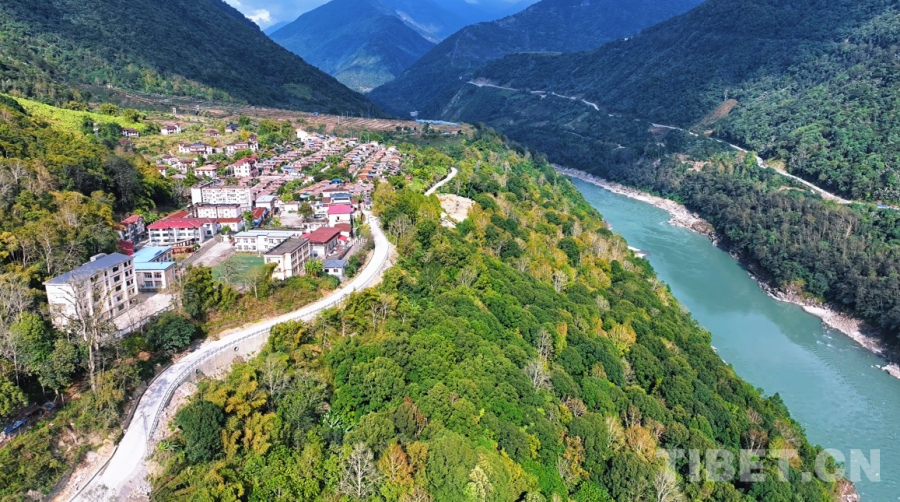 西藏自治區林芝市墨脫縣德興村鳥瞰 航拍:達次