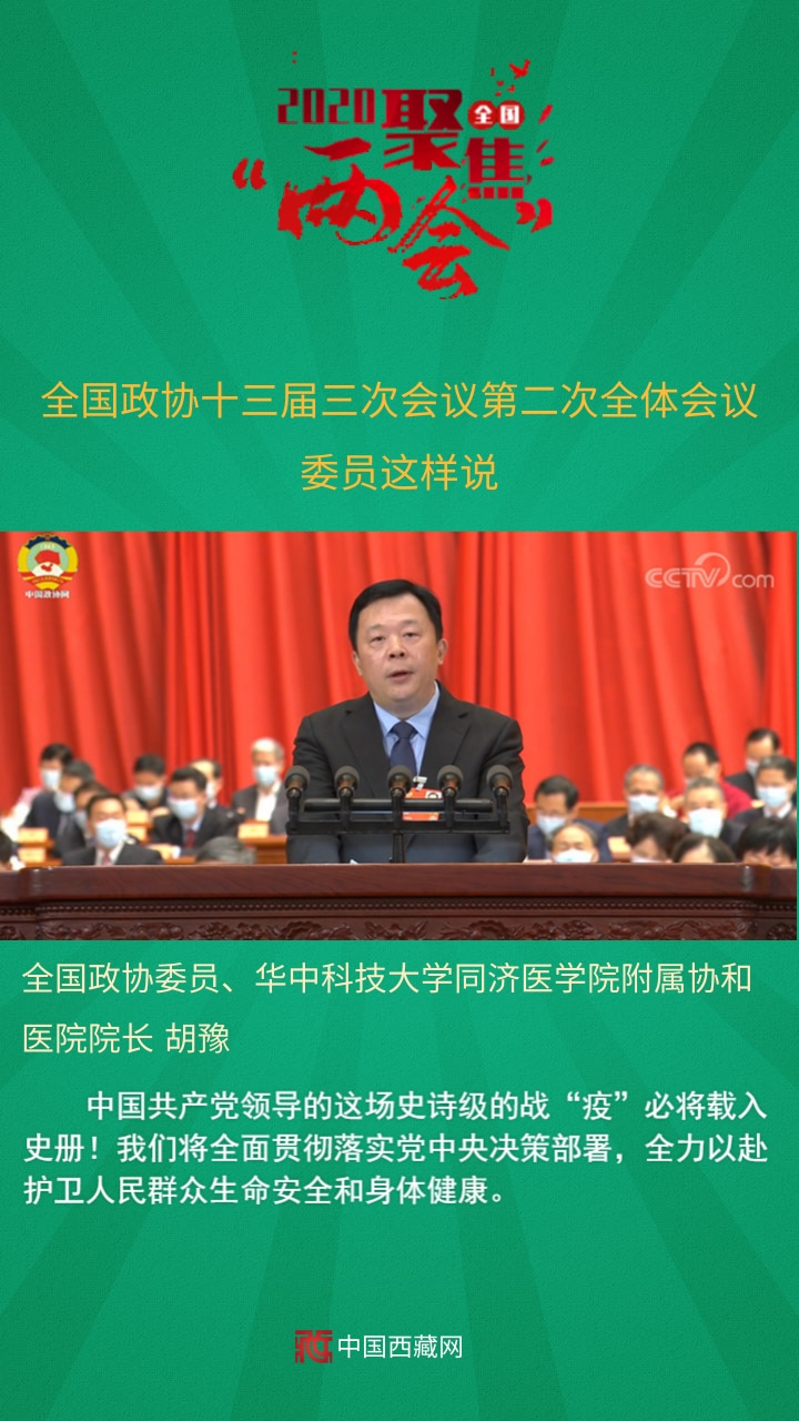 全國(guó)政協(xié)委員、華中科技大學(xué)同濟(jì)醫(yī)學(xué)院附屬協(xié)和醫(yī)院院長(zhǎng)胡豫發(fā)言說,中國(guó)共產(chǎn)黨領(lǐng)導(dǎo)的這場(chǎng)史詩級(jí)的戰(zhàn)“疫”必將載入史冊(cè)!我們將全面貫徹落實(shí)黨中央決策部署,全力以赴護(hù)衛(wèi)人民群眾生命安全和身體健康。