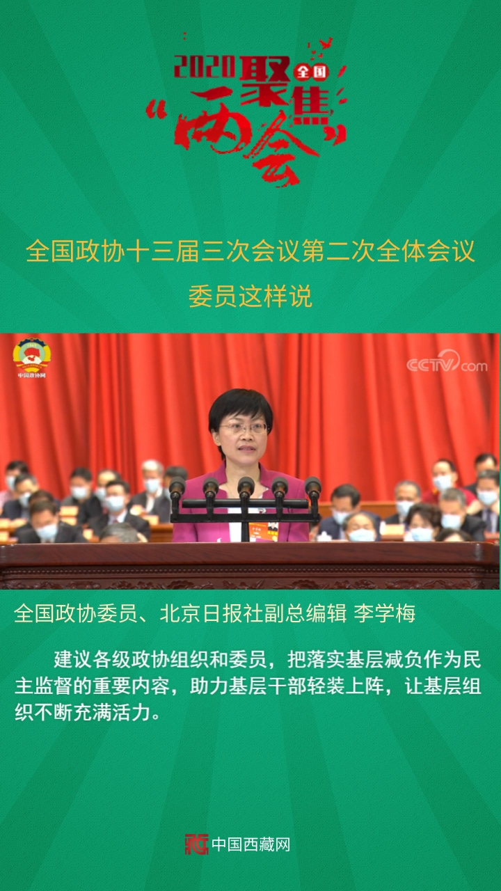 全國(guó)政協(xié)委員、北京日?qǐng)?bào)社副總編輯李學(xué)梅發(fā)言說,建議各級(jí)政協(xié)組織和委員,把落實(shí)基層減負(fù)作為民主監(jiān)督的重要內(nèi)容,助力基層干部輕裝上陣,讓基層組織不斷充滿活力。