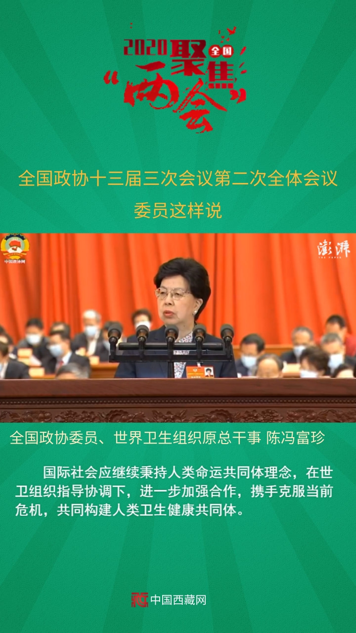 全國(guó)政協(xié)委員、世界衛(wèi)生組織原總干事陳馮富珍發(fā)言說,國(guó)際社會(huì)應(yīng)繼續(xù)秉持人類命運(yùn)共同體理念,在世衛(wèi)組織指導(dǎo)協(xié)調(diào)下,進(jìn)一步加強(qiáng)合作,攜手克服當(dāng)前危機(jī),共同構(gòu)建人類衛(wèi)生健康共同體。