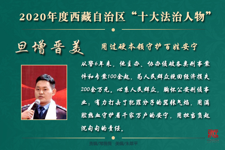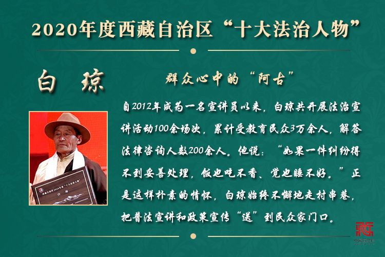 在法治西藏建設過程中,涌現出一大批辛勤付出、任勞任怨、一心為民、敢于亮劍、影響廣泛、群眾認可的典型人物。他們長年累月奔波在基層一線,活躍在田間地頭,踐行法治理念,彰顯公平正義,在高原大地傳播法治精神,為各族群眾送去法治溫暖。(中國西藏網 責編/常薇薇 美編/朱翠平)