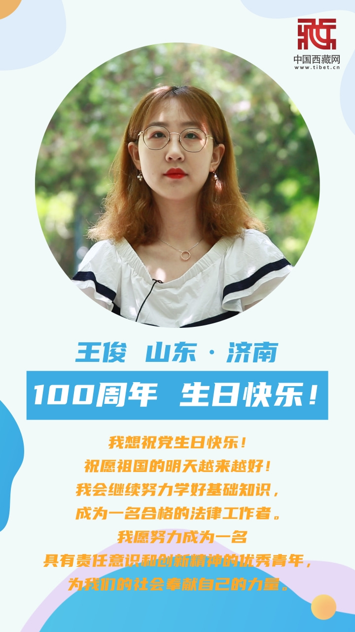 100年前,中國共產(chǎn)黨為苦難深重的中華民族帶來了光明與希望,100年后,中國人民在中國共產(chǎn)黨的帶領下,看到了中華民族偉大復興的曙光。在中國共產(chǎn)黨成立100周年之際,一起聆聽新時代青年學子送上的祝福!(制作/許娜 編輯/澤仁措姆)