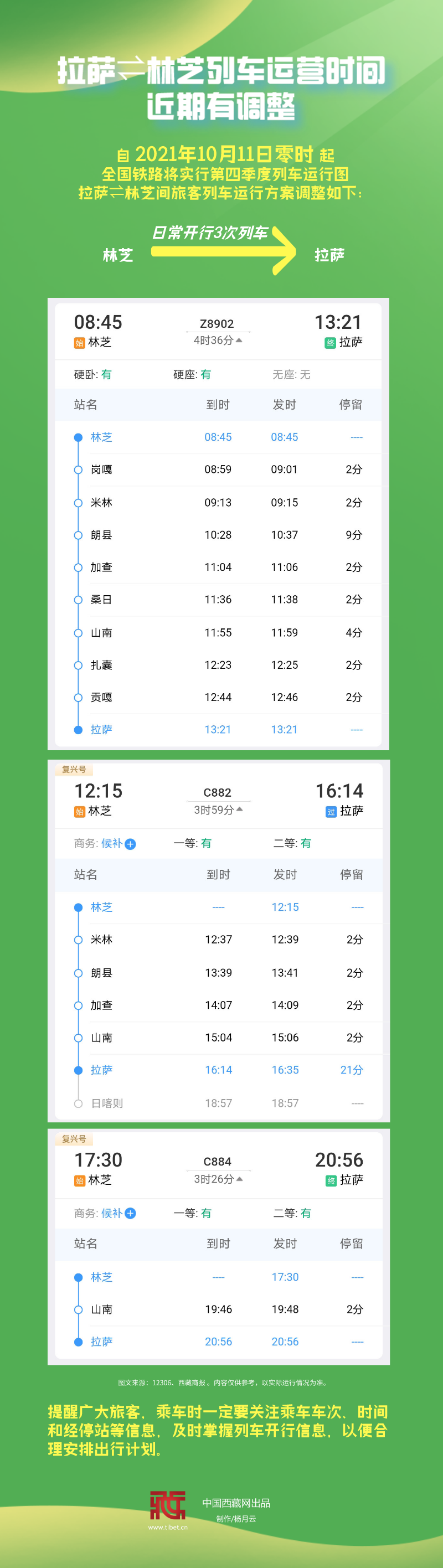 長圖|拉薩林芝列車運營時間近期有調整