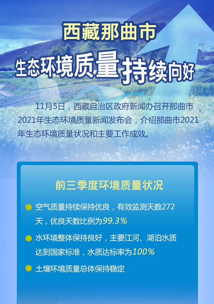 11月5日,西藏自治區政府新聞辦召開那曲市2021年生態環境質量新聞發布會,介紹那曲市2021年生態環境質量狀況和主要工作成效。[詳細]