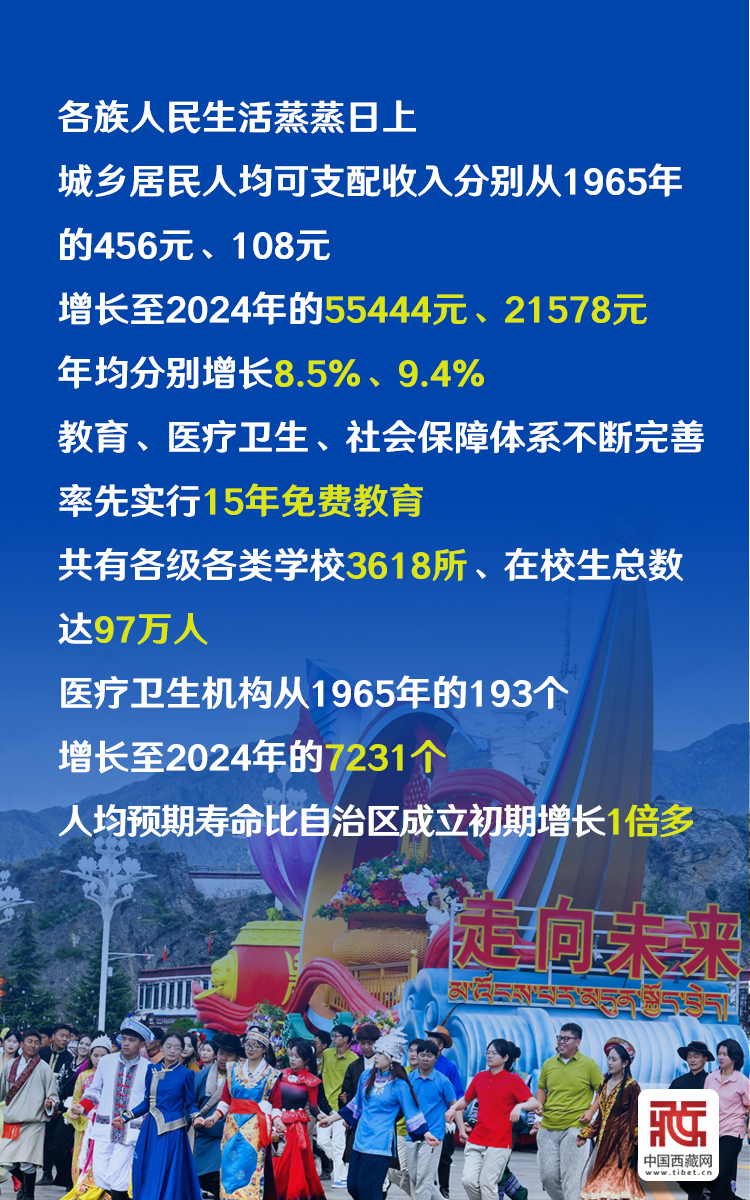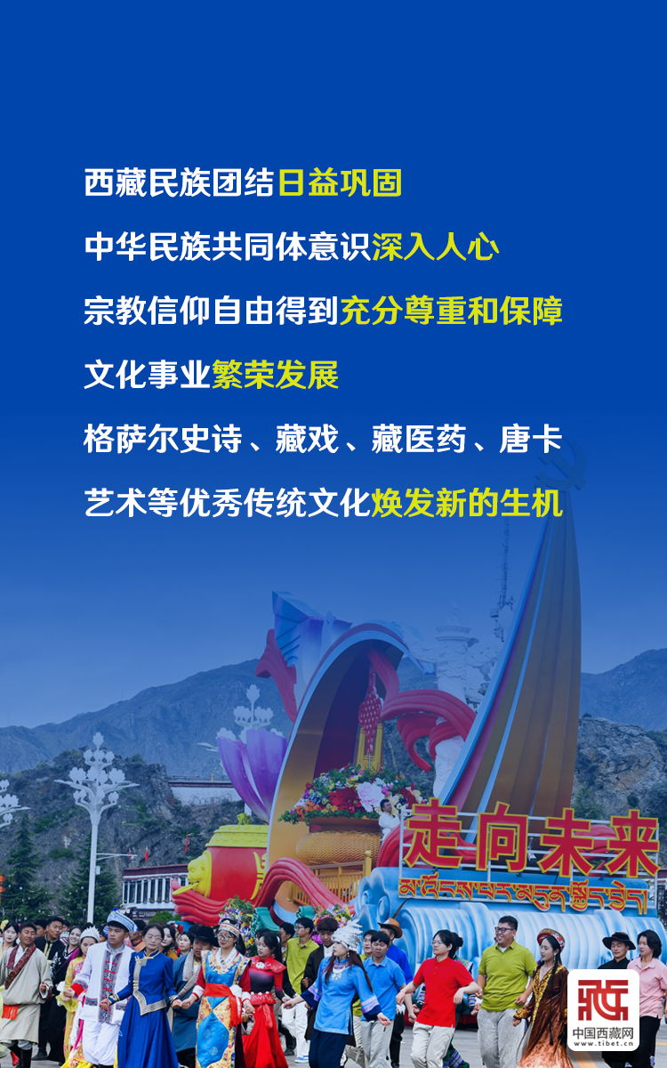 60年來,西藏經濟社會全面發展,各族人民生活蒸蒸日上,生態文明建設成效顯著,民族團結日益鞏固,中華民族共同體意識深入人心,宗教信仰自由得到充分尊重和保障,文化事業繁榮發展。(中國西藏網 記者/王淑 馮重霖 邊子捷 趙振宇 德吉卓瑪 次旦拉姆 旦曲 賈華加 趙釗 姚浩然 劉莉 楊眉笑 海報制作/趙佳)