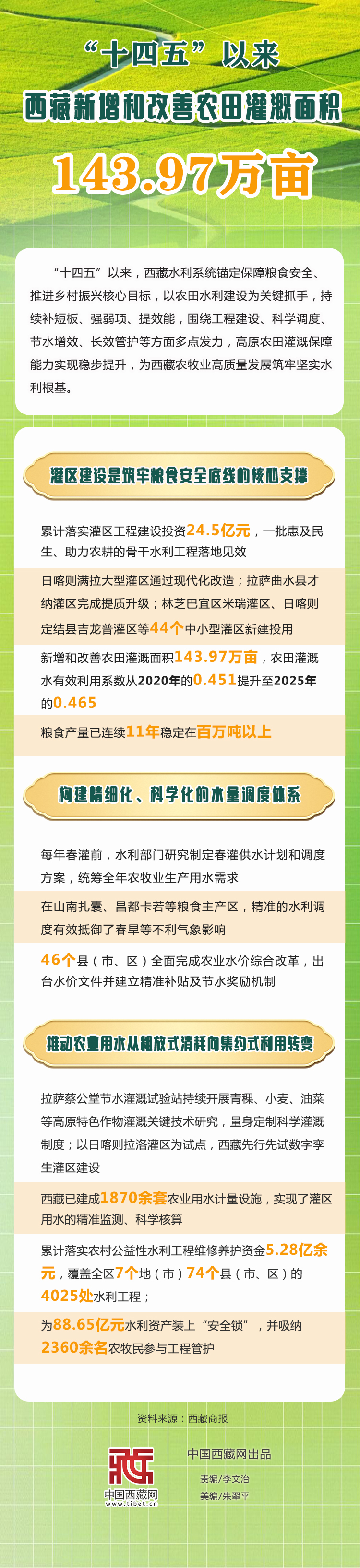 圖解|“十四五”以來 西藏新增和改善農田灌溉面積143.97萬畝