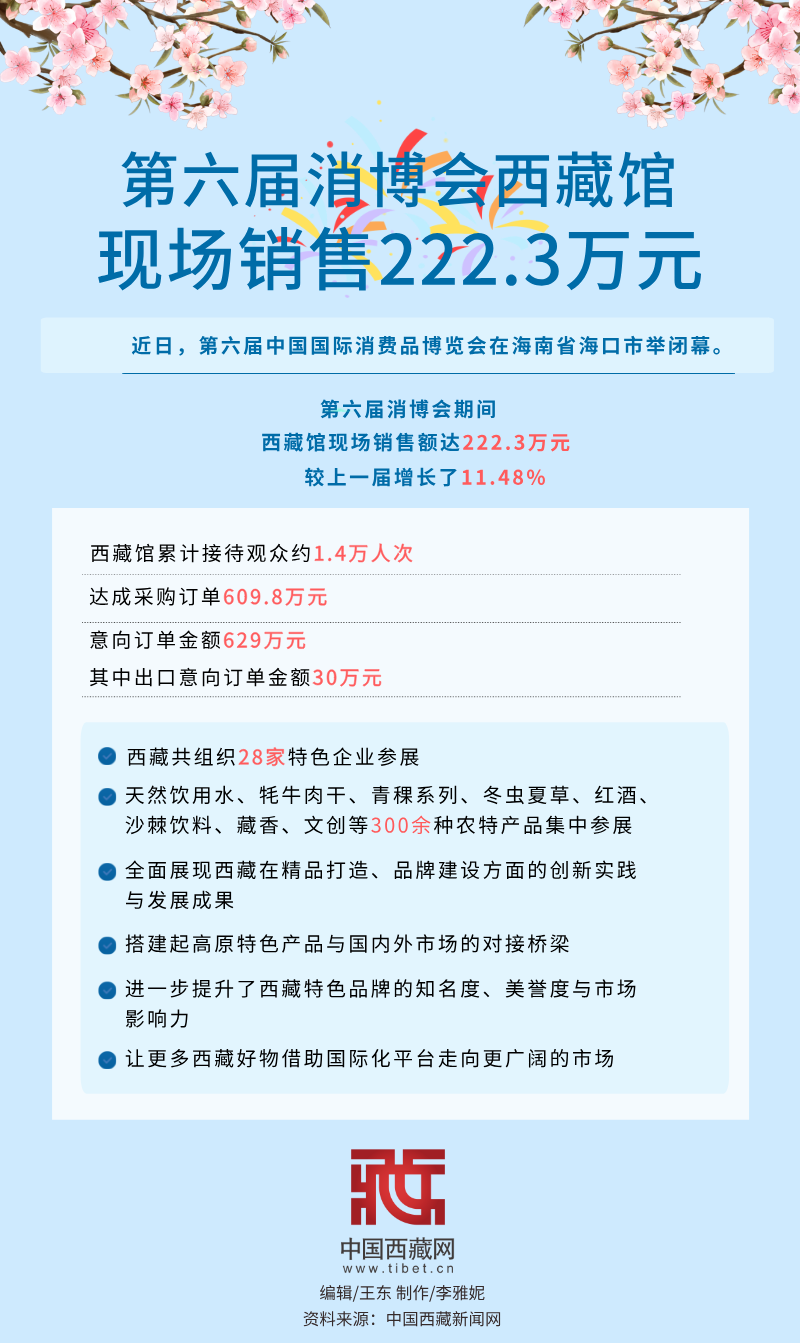 海報|第六屆消博會西藏館現(xiàn)場銷售222.3萬元