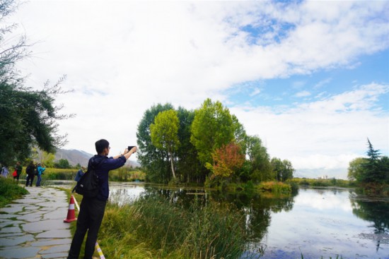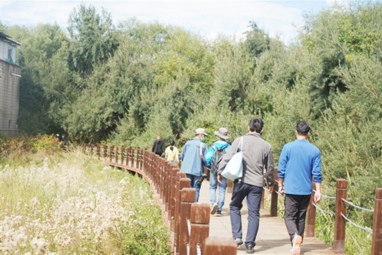 9月初,濕地里的花草樹木從夏天的翠綠到初秋的泛黃,成為了拉魯濕地另一番美景。 人們?cè)诓叫衅溟g,呼吸著充足的氧氣,情緒高漲,邁開輕快而有力的步伐,沿著拉魯濕地步道健步前行,時(shí)而駐足觀望沿途美景,時(shí)而聚集一方合影留念,不僅鍛煉了身體,又領(lǐng)略了自然風(fēng)光,也陶冶了情操。