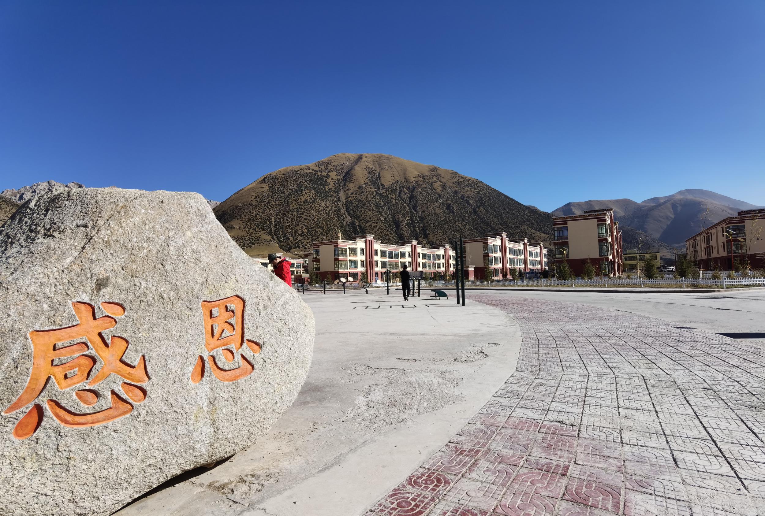 “牧民希望家園”小區內的一個石頭上,“感恩”兩個紅色大字格外顯眼