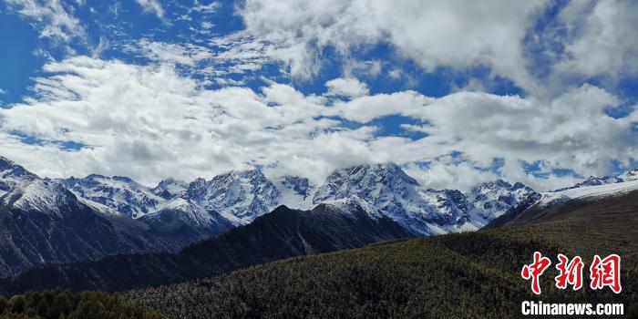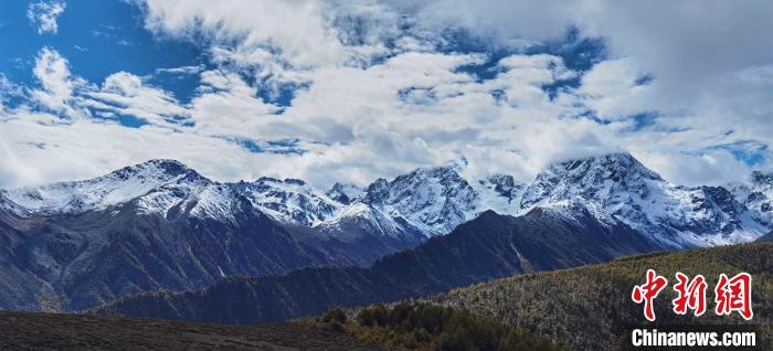 圖為銀白色白馬雪山與綠色植被勾勒生態(tài)畫(huà)卷。 張?zhí)砀!z