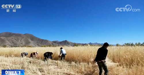在雅魯藏布江北岸的南木林縣艾瑪鄉,當地100萬平方米的綠麥草迎來了豐收,這些天,大伙正忙著收割。