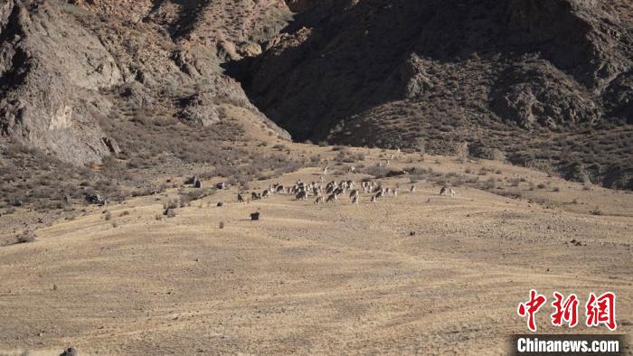 12月中旬,在地處祁連山區的甘肅肅南縣祁豐藏族鄉吊達坂附近,肅南縣融媒體中心記者拍攝到數群巖羊在公路旁的山坡上悠閑覓食。據目測,此次拍到公路旁覓食巖羊約有200多只。巖羊是國家二級重點保護野生動物,體型中等,形態介于野山羊與野綿羊之間。巖羊具有極高的攀巖技術,可以在絕壁上自由跳躍,一跳可達二三米,因此也被稱為“巖壁上的精靈”。近年來,肅南縣深入推進祁連山國家級自然保護區生態文明建設,加強保護區管理,實施退牧還草等措施,當地生態環境逐步改善,民眾保護意識不斷增強,使得當地野生動物數量逐年增加。