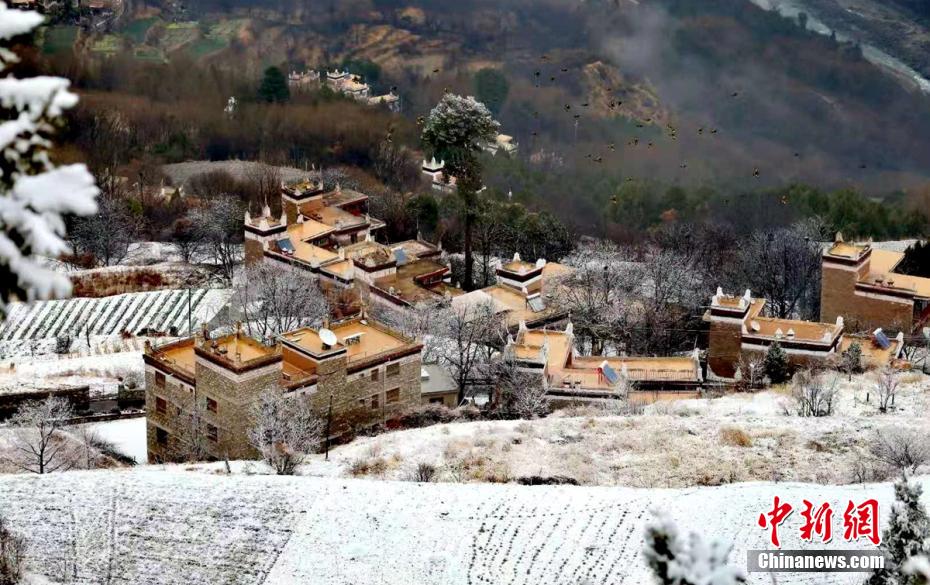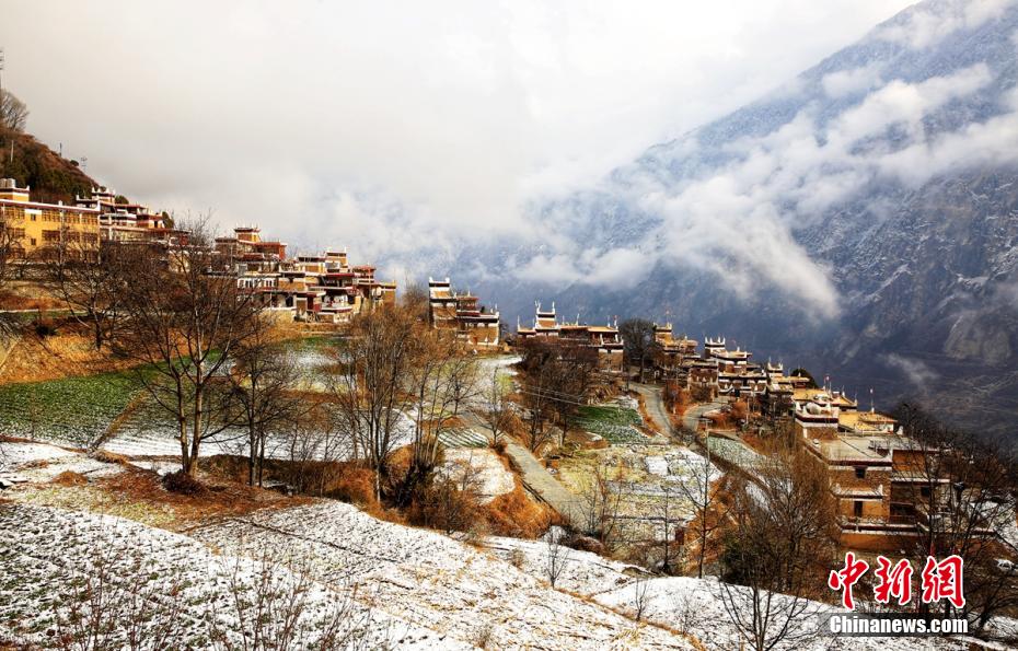 圖為丹巴藏寨披上一層“白紗”。 吉進 攝