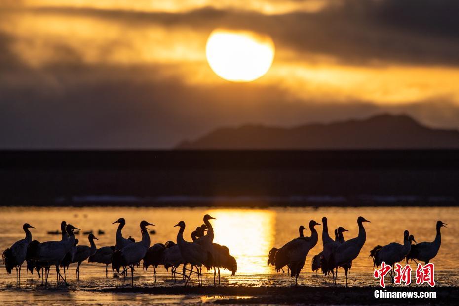 2月17日,西藏拉薩市林周縣黑頸鶴保護區內,黑頸鶴翩躚起舞、分外美麗。中新社記者 何蓬磊 攝