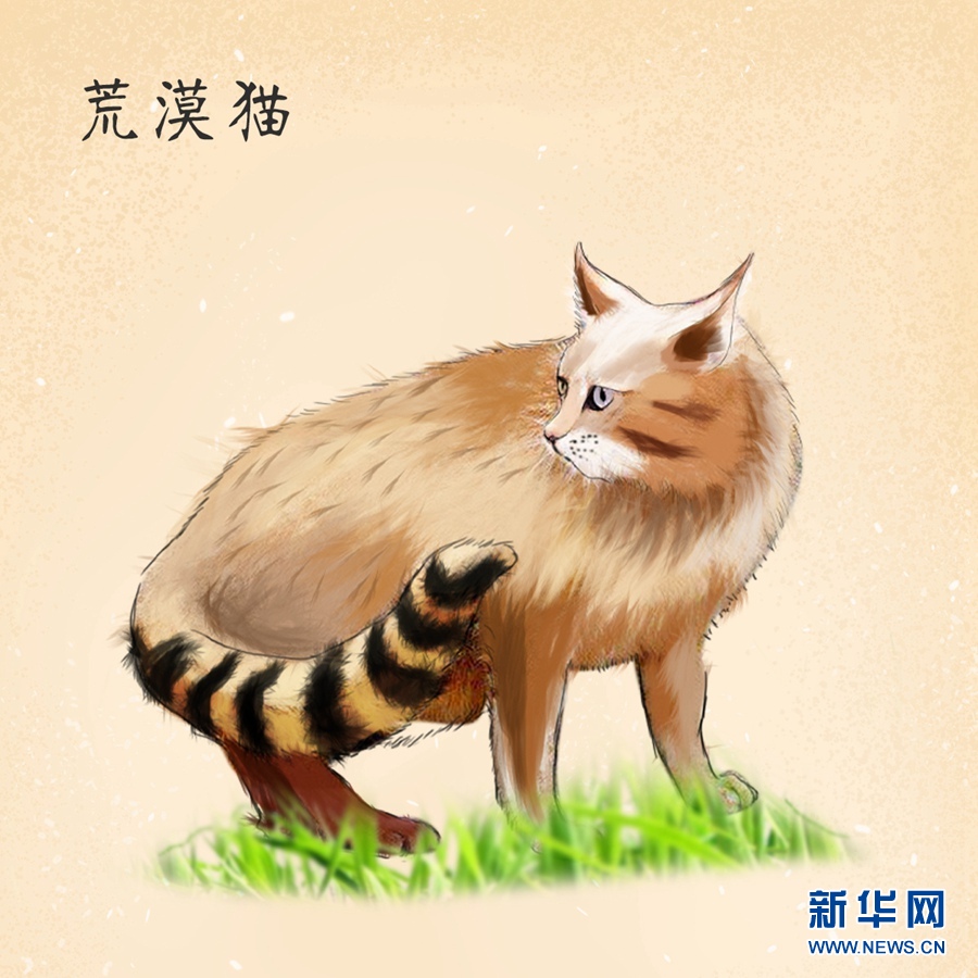 兔猻:國家二級(jí)保護(hù)動(dòng)物。兔猻腳短,毛發(fā)很長、很厚,耳朵位置較低,有一副貌似是貓頭鷹的面容,主要棲息于沙漠、荒漠、草原或戈壁地區(qū),能適應(yīng)高寒的環(huán)境。