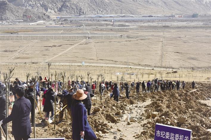 拉薩市林草局相關負責人介紹,上午10點,植樹隊伍早早就到達現場,在事先劃分好的植樹區域,大家態度積極、熱情高漲,興致勃勃地投入到植樹活動中。