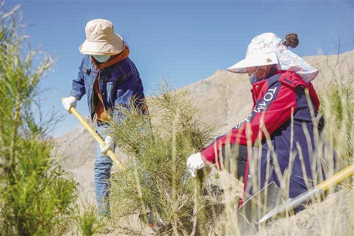 “今年是全國義務植樹運動40周年,圍繞全民義務植樹,拉薩市林草局率先垂范,今天,共栽植沙棗、銀白楊、油松、云杉、細葉紅柳2600余株。”拉薩市林草局林勘所科長晉美說,“下一步,我們會按照樹木栽植的養護機制每十天安排一次澆灌、除草、施肥等工作。”