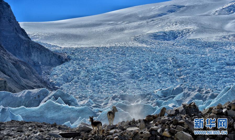 崗布冰川附近的巖羊(2017年1月19日攝)。新華社記者 普布扎西 攝