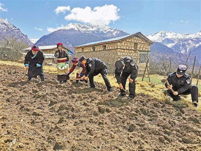 正值春耕時節,山南市錯那縣吉布鄉到處一派熱火朝天的農忙景象。為確保轄區春耕生產順利進行,山南邊境管理支隊吉布邊境派出所移民管理警察走進田間地頭,幫助缺少勞動力的農戶春耕。