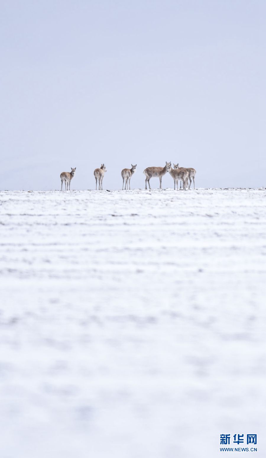 近日,可可西里迎來降雪,大量藏羚羊匯聚在可可西里五道梁地區,踏上遷徙之路。