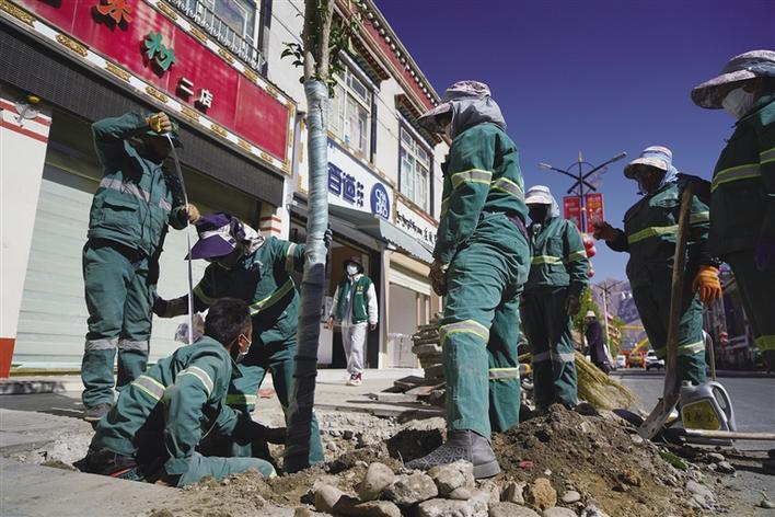 “為了不影響道路交通,我們每天晚上加班加點挖坑、拔樹,工作到凌晨三四點,白天種樹、填坑,確保盡快完成種植工作。”達娃說。