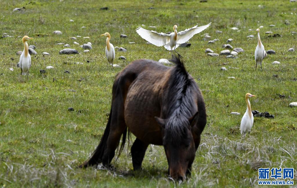 5月23日,牛背鷺在易貢國家地質公園棲息。新華社記者 張汝鋒 攝