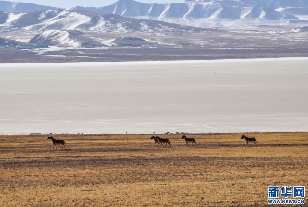 羌塘草原上奔跑的藏野驢。(新華社記者 田金文 攝)