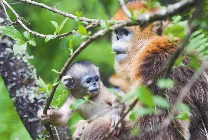 神農架國家公園動物保護人員經過多年的努力,加之當地生態環境的不斷改善,神農架金絲猴由上世紀80年代的501只擴大到現在的3個金絲猴大種群9個小種群,總數達到1471只。 這是5月19日在神農架國家公園大龍潭金絲猴野外研究基地山林中拍攝的金絲猴。 新華社記者 肖藝九 攝