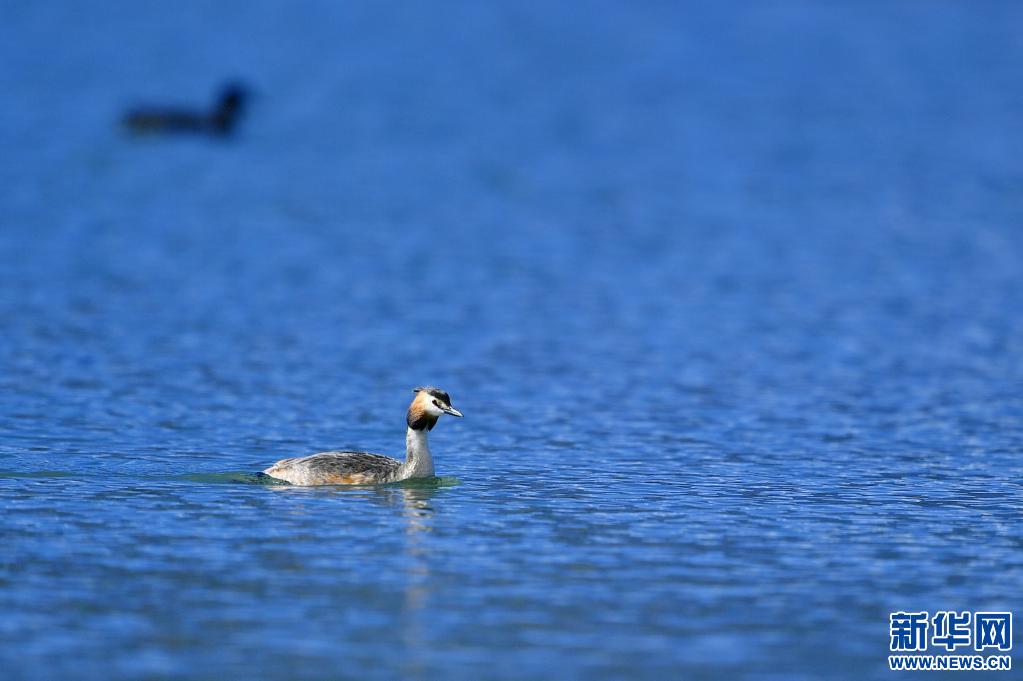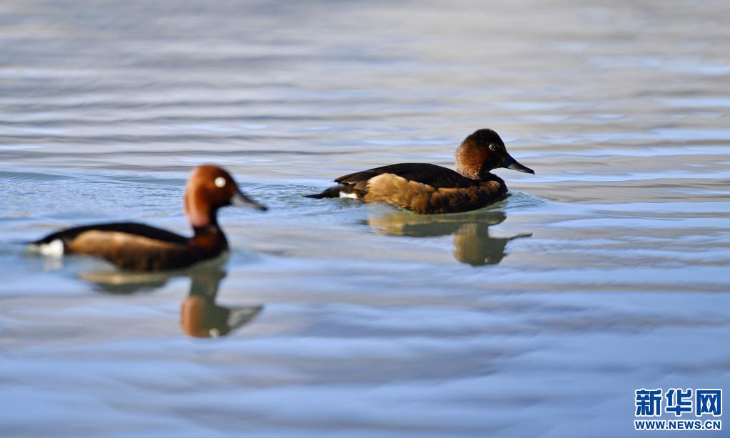 夏日里,鳳頭??和小??在西藏拉薩拉魯濕地國家級自然保護區水面上嬉戲。