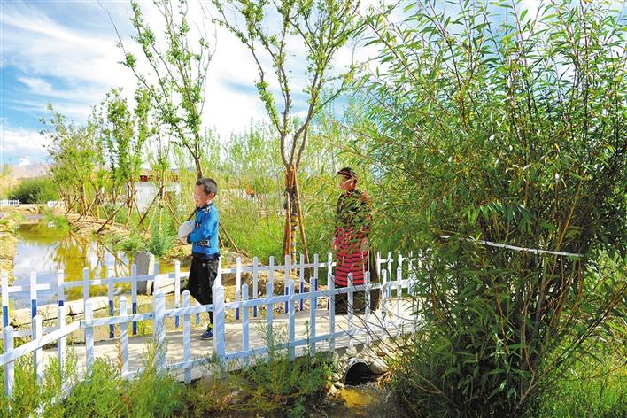 圖為阿里地區噶爾縣獅泉河鎮加木村村民在綠樹成蔭的村莊里散步。記者 溫凱 洛桑旦增 達珍 攝