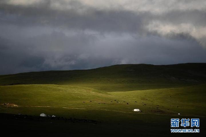 這是8月3日在青海省果洛藏族自治州瑪沁縣當洛鄉貢龍村拍攝的夏季草場。新華社記者 張龍 攝