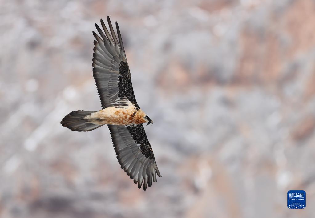 這是在四川省阿壩藏族羌族自治州若爾蓋縣境內拍攝的胡兀鷲(2020年11月17日攝)。新華社 王冀川 攝