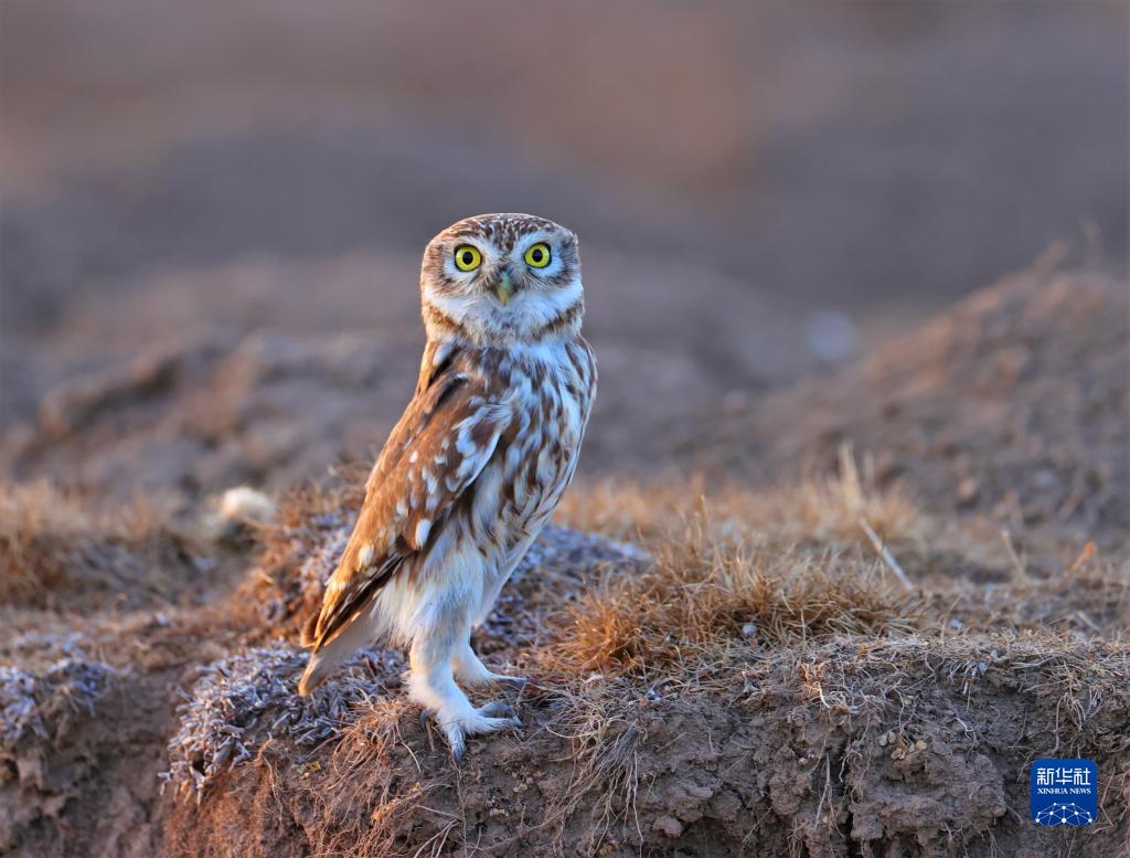 這是在四川省阿壩藏族羌族自治州若爾蓋縣境內拍攝的縱紋腹小鸮(2020年12月2日攝)。新華社 王冀川 攝