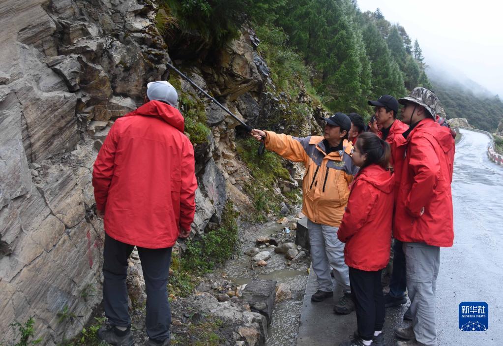 9月7日,在西藏日喀則市一處山體,中科院地理科學與資源研究所客座教授李渝生(左二)和年輕的科考隊員分析地質災害問題。新華社記者 杜剛 攝
