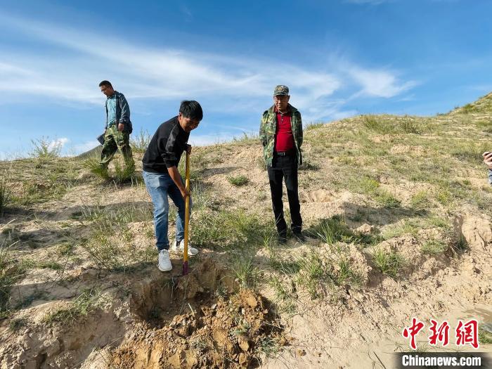 圖為工作人員在演示挖檸條坑。 王琳娜 攝
