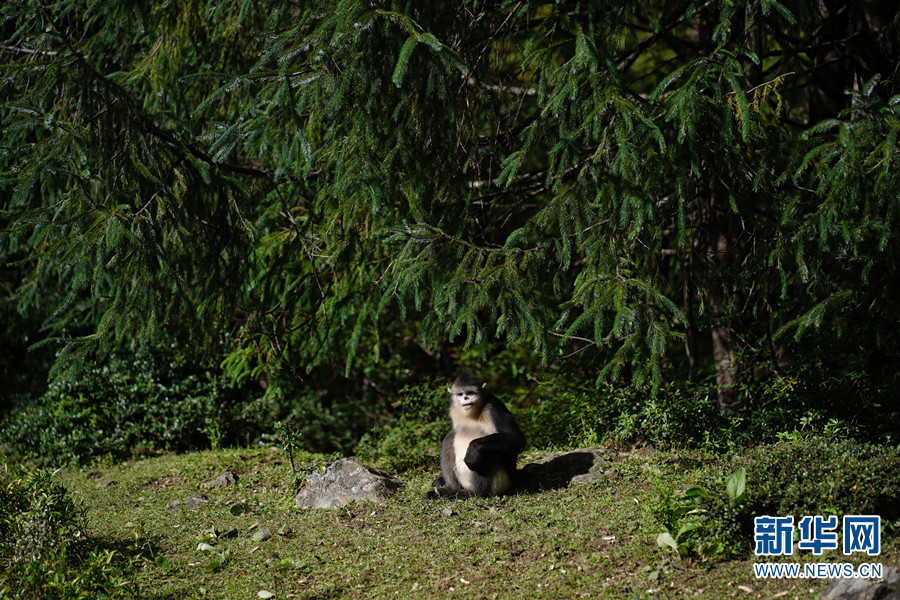滇金絲猴正在外出活動(2021年9月16日攝)。新華網(wǎng)發(fā)(劉祖平 攝)