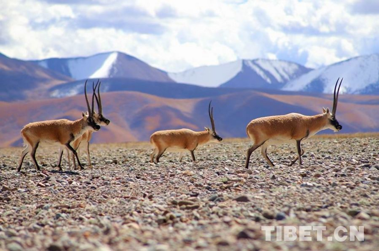 圖為那曲市境內雪山下正在遷徙的藏羚羊 攝影:王魯鎮