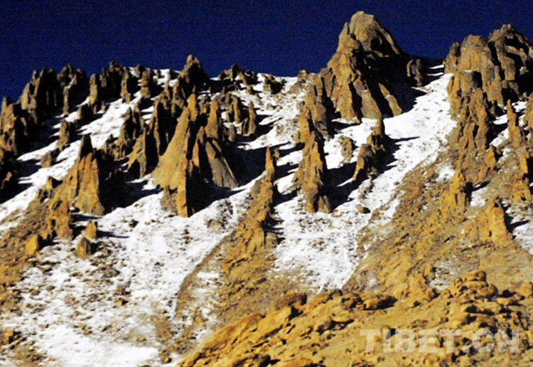 圖為文部辦事處(現尼瑪縣)被當地牧民群眾稱為“一百個騎兵”的石林山(唐召明1987年攝)