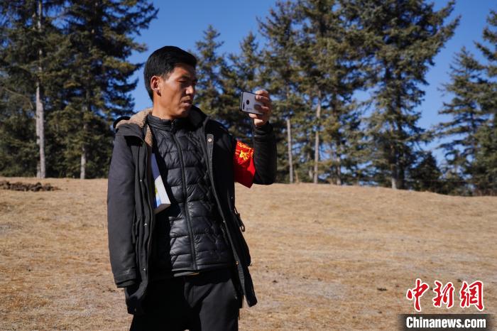 圖為桑杰加用手機記錄自己巡護(hù)的林場。 馬銘言 攝