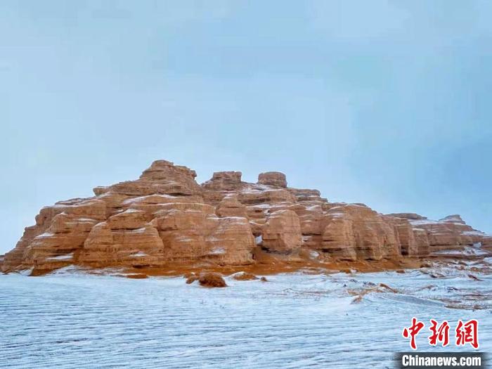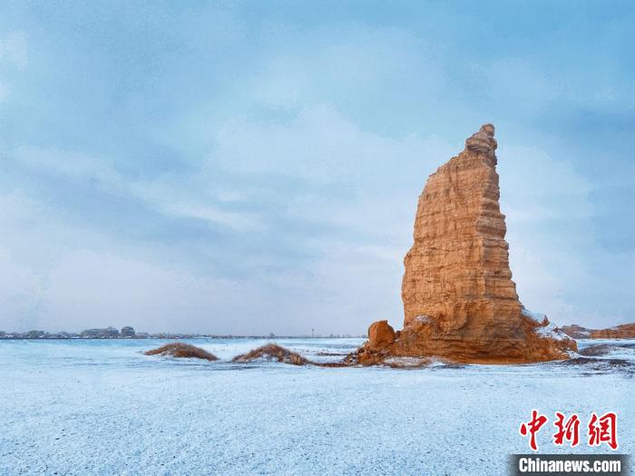 甘肅敦煌雅丹地貌現罕見春雪