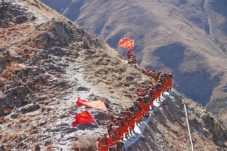 圖為西藏森林消防總隊特種救援大隊行進在訓練途中。 記者 王杰學 通訊員 李斯 攝
