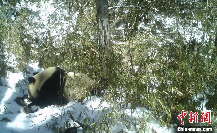 野生大熊貓雪中里喝水 蜂桶寨保護(hù)區(qū) 供圖