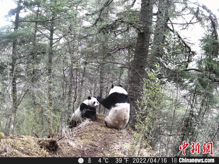 為了打敗競爭者,平時呆頭呆腦、憨態可掬,有點傻萌的“滾滾”秒變“功夫熊貓”,電光火石的出拳速度和直取要害的攻擊路線,精彩激烈的拳擊、摔跤、柔術等看家本領統統用上,甚至為了提高自身氣勢,不惜使出“獅吼功”,試圖在氣勢上壓倒競爭對手。而這一切只是為了選擇優秀的基因,以利于大熊貓種群在嚴酷的自然環境中繁衍生存。此次監測視頻中,出現3只大熊貓同框畫面,其中兩只雄性大熊貓因爭奪交配權出現吼叫、打斗行為;一段視頻中,出現兩只大熊貓“打情罵俏”求偶交配畫面。