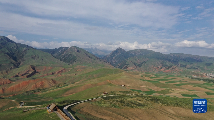 這是6月19日在祁連縣拍攝的祁連山支脈卓爾山美景(無人機照片)。新華社記者 李占軼 攝