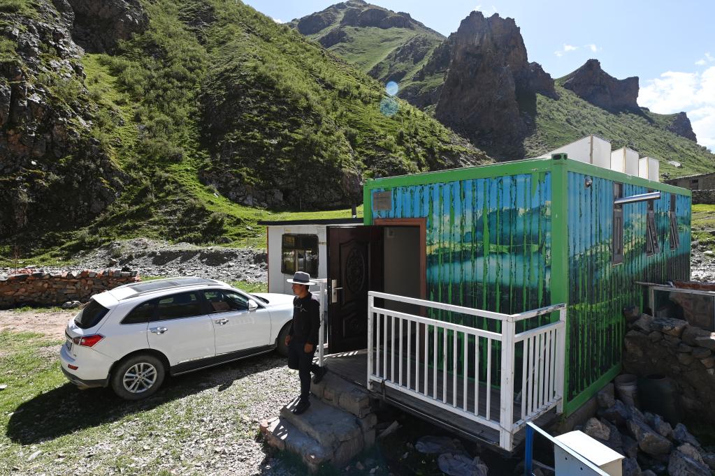 盛夏,昂賽大峽谷流水潺潺、綠草如茵;四周山勢奇絕,常有雪豹、白唇鹿、巖羊等野生動物出沒。在特許經(jīng)營接待集裝箱內(nèi),桑周忙著打掃衛(wèi)生,清洗床鋪,準(zhǔn)備迎接從各地到來的自然體驗(yàn)者。