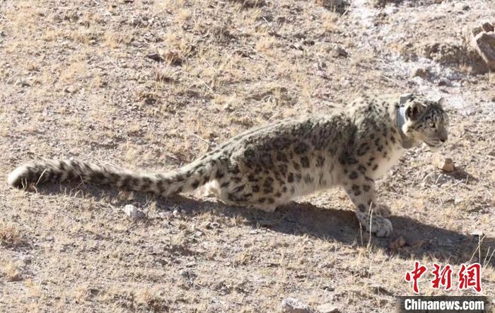 資料圖為佩戴衛(wèi)星項(xiàng)圈的雪豹“祁跡”。 中新社發(fā) 祁連山國(guó)家公園青海省管理局 供圖